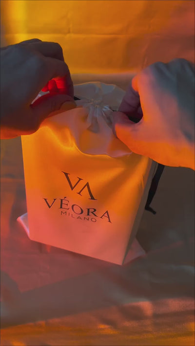 All’esterno, una pochette o bag VÉORA custodisce il rituale insieme a un gift surprise: discreto, inatteso, pensato per estendere il piacere dell’esperienza oltre il prodotto.